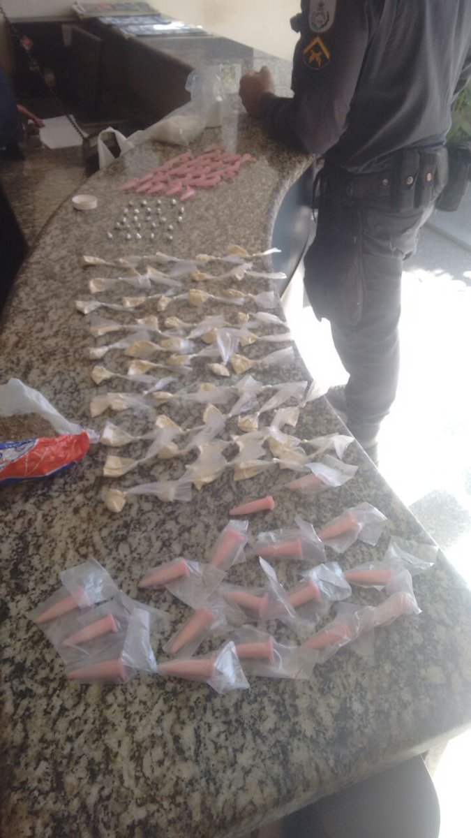 Policiais do 28º Batalhão de Policia Militar apreenderam uma grande quantidade de drogas no bairro Parque Maíra, complexo Três Poços, em Volta Redonda.