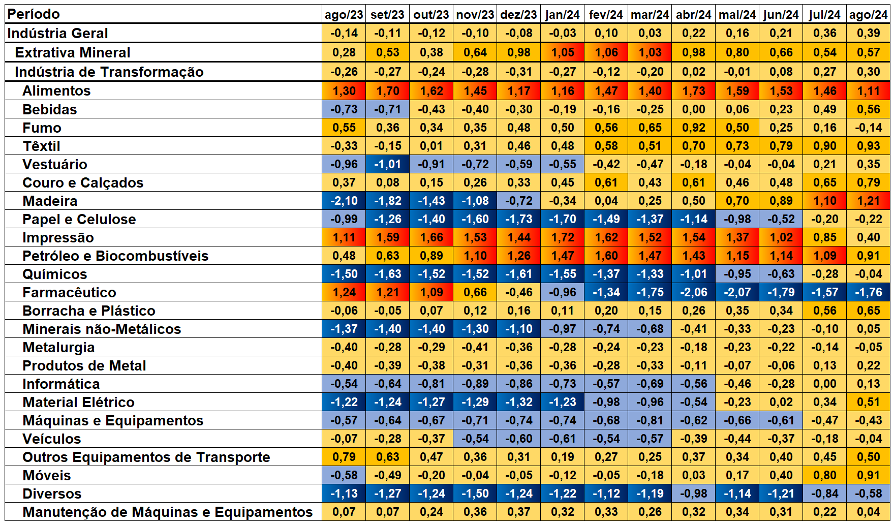 Figura 1 – Mapa de Calor da Indústria (Ago/23 – Ago/24)